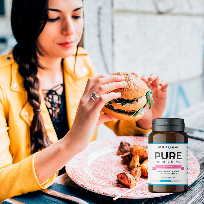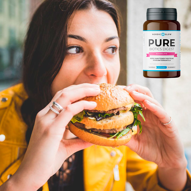 Pure Biotics Digest on suunniteltu auttamaan ruokailun jälkeisiin ruoansulatusvaivoihin.