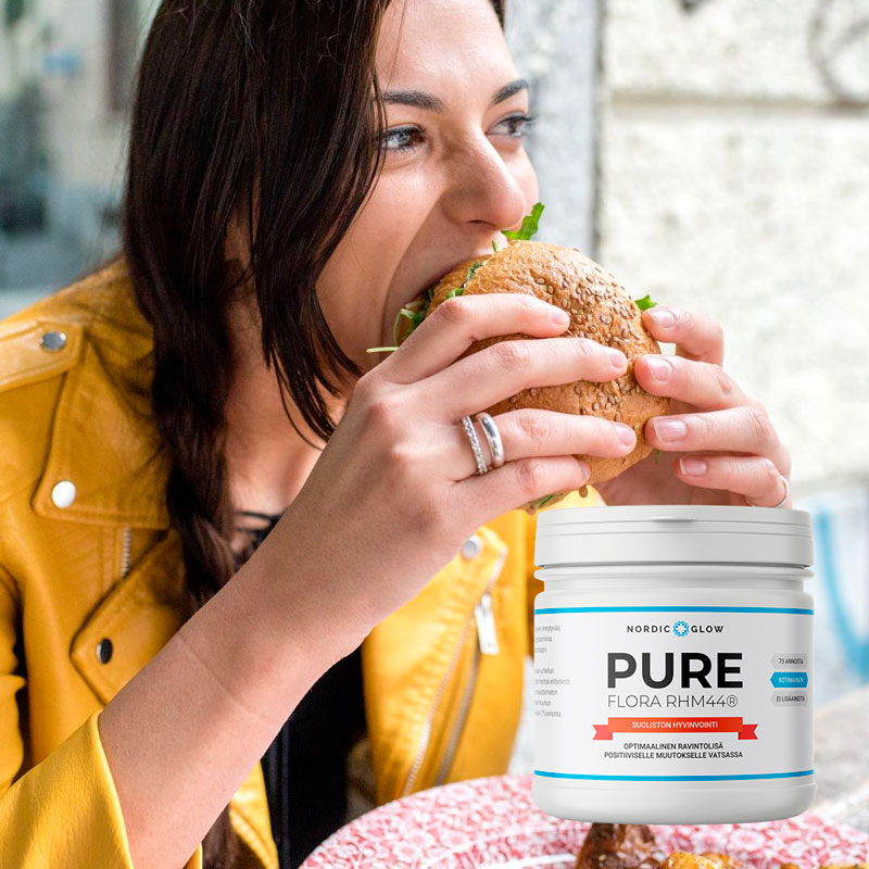 Pure Biotics RHM44® auttaa ravitsemaan ja uudistamaan suolistoa sekä vähentämään tulehduksillisia reaktioita.